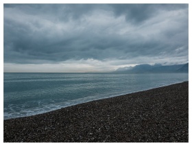 Sea Beach Clouds Mountains