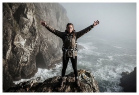 Woman Cliff Ocean Waves