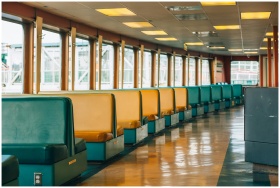 Interior view of Seattle ferry with colorful yello
