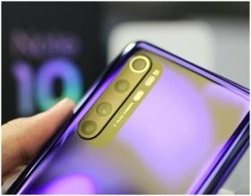 Detailed view of a smartphone with AI quad camera