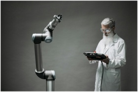 A scientist uses a robotic device for advanced the