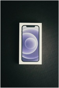 A new smartphone in its packaging on a black background, showcasing latest technology.
