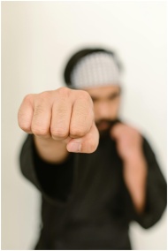 Close-up image of a martial artist's fist, showcas