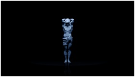 A classical Greek-style statue in dramatic lighting against a dark background.