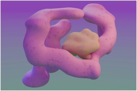 A vibrant abstract 3D render featuring organic forms in pink and purple, suitable as a modern art background.