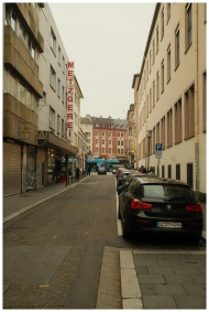 Urban street scene in Mainz, Germany on a calm day, capturing the essence of city life.