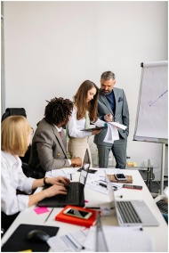 A diverse team collaborating in a modern office wi