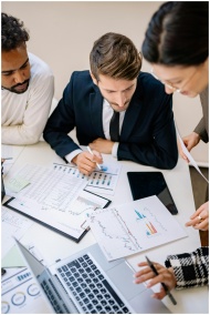 Business professionals collaborating over charts a