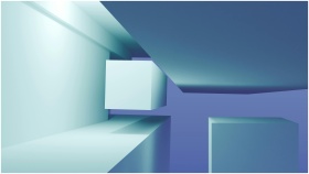 Modern abstract 3D render with floating geometric cubes in soft blue hues, perfect for backgrounds.