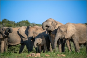 A family of African elephants gathering in the wil