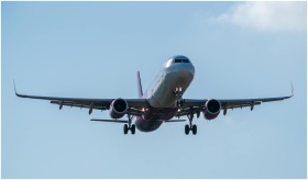 Airplane approaching for landing on a clear day in