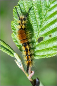 Close-up of a Rusty Tussock Moth caterpillar on a