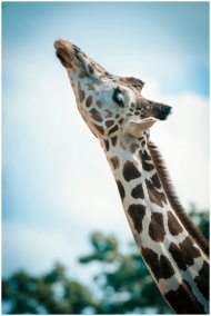 Close-up of a giraffe stretching its neck under a