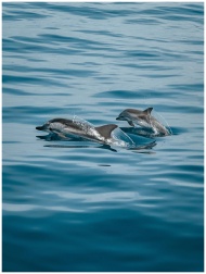 A pair of dolphins gracefully leaping through the