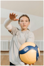 Young female volleyball player in motion, serving