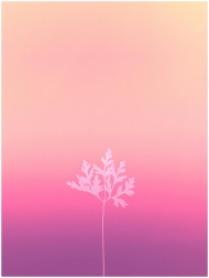 Minimalist silhouette of a plant against a pink and purple gradient background.