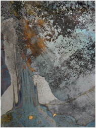 Close-up view of rusty metal surface with textured patterns and unique color combinations for artistic use.