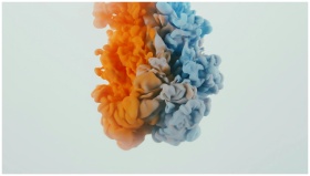 Vibrant swirls of orange and blue ink creating an