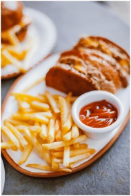 Delicious crispy French fries served with ketchup