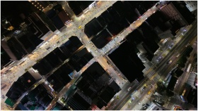 A captivating aerial night view of bustling city streets in Busan, South Korea.