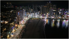 Aerial night view of Busan's illuminated skyline a