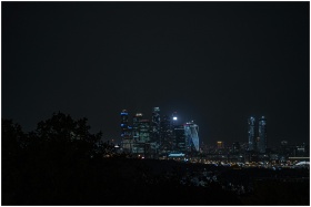 Stunning cityscape featuring illuminated skyscrapers against the night sky.