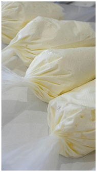 Close-up of pastry cream in piping bags, ideal for bakery uses. Perfect for delicate desserts.