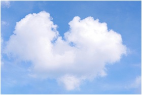 A fluffy, heart-shaped cloud set against a bright