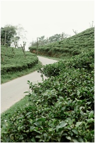 A winding road through lush green tea plantations