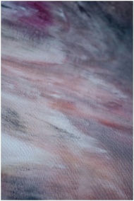 An abstract close-up showcasing soft pink and gray hues on textured canvas.