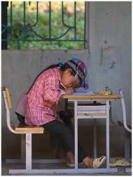Child in Hà Giang, Việt Nam focused on studying in a rural classroom setting.