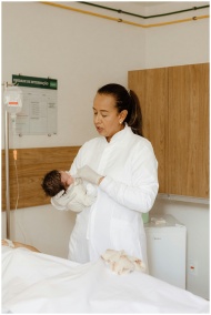 Healthcare professional holding a newborn in a hos