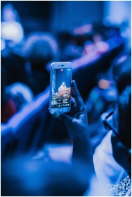 Close-up of a person recording a live performance