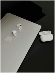 A sleek composition featuring AirPods Pro and MacB