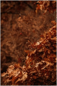 Close-up of brown autumn leaves on a branch, captu