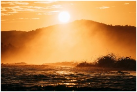 Capture the beauty of a sunrise over the ocean with dynamic waves and warm golden tones.