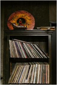 Vinyl records displayed in a Gent music store with
