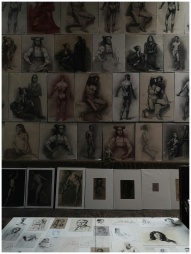 Detailed sketches and artworks displayed in a Saint Petersburg museum.
