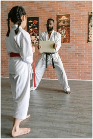 A martial arts practice session with a young stude