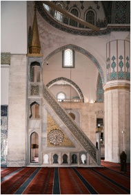 Detailed view of Ottoman architecture inside a mosque, highlighting ornate Islamic decor.