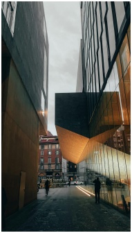 Striking view of contemporary buildings reflecting each other in Milan's cityscape.