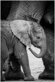 Black and white photograph of a baby African eleph