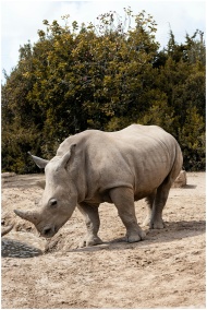 A critically endangered Northern White Rhino in its natural habitat at a wildlife reserve.