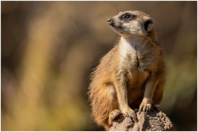 A close-up of a meerkat perched on a rock, showcasing wildlife in Leipzig, Germany.