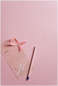 Pink ribbon with calendar promoting breast cancer awareness in October.