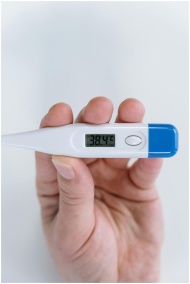 Close-up of a hand holding a digital thermometer s