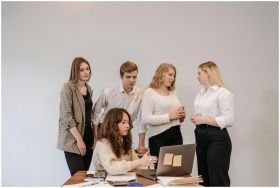 Group of young professionals in discussion around