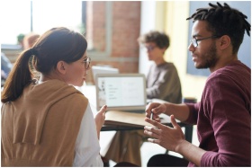 A diverse group of professionals engaged in a collaborative meeting in a modern office setting.