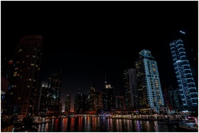 Stunning night view of Dubai Marina with illuminat