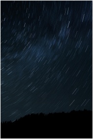 Long exposure captures star trails over mountains